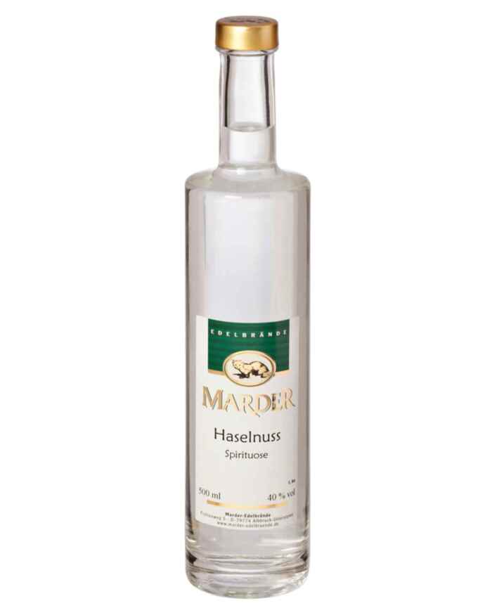 Marder Haselnuss Spirituose aus dem Süd-Schwarzwald gilt gemeinhin als das „Nutella ab 18“. Dieser Haselnussschnaps von Marder Edelbrände hat es in sich. Und zwar frisch geröstete Haselnüsse. Diese werden feingehackt und mit fast reinem Neutralalkohol angesetzt. Das Mazerat nimmt das typische Nougat-Aroma schnell auf und ist gewaltig gehaltvoll. Der so gewonnene Haselnussgeist kann schon nach wenigen Tagen destilliert werden. Abschließend wird das Destillat mit Süße verfeinert und der Alkoholgehalt reduziert.
