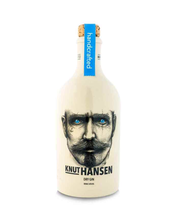 Ein Gin aus Hamburg schreit geradezu nach einer Seefahrer-Story. Im Falle von Knut Hansen Dry Gin ist mit dem Produktnamen schon alles gesagt: Knut Hansen war ein legendärer Seefahrer. Er steht für Freiheit und Abenteuer und verleiht dem Gin im wahrsten Sinne des Wortes sein Gesicht. Und diese blauen Augen – lassen einen nicht mehr los. Die Abfüllung erfolgt in graue Tonflaschen im Retro-Design – perfekter kann Marketing kaum sein.